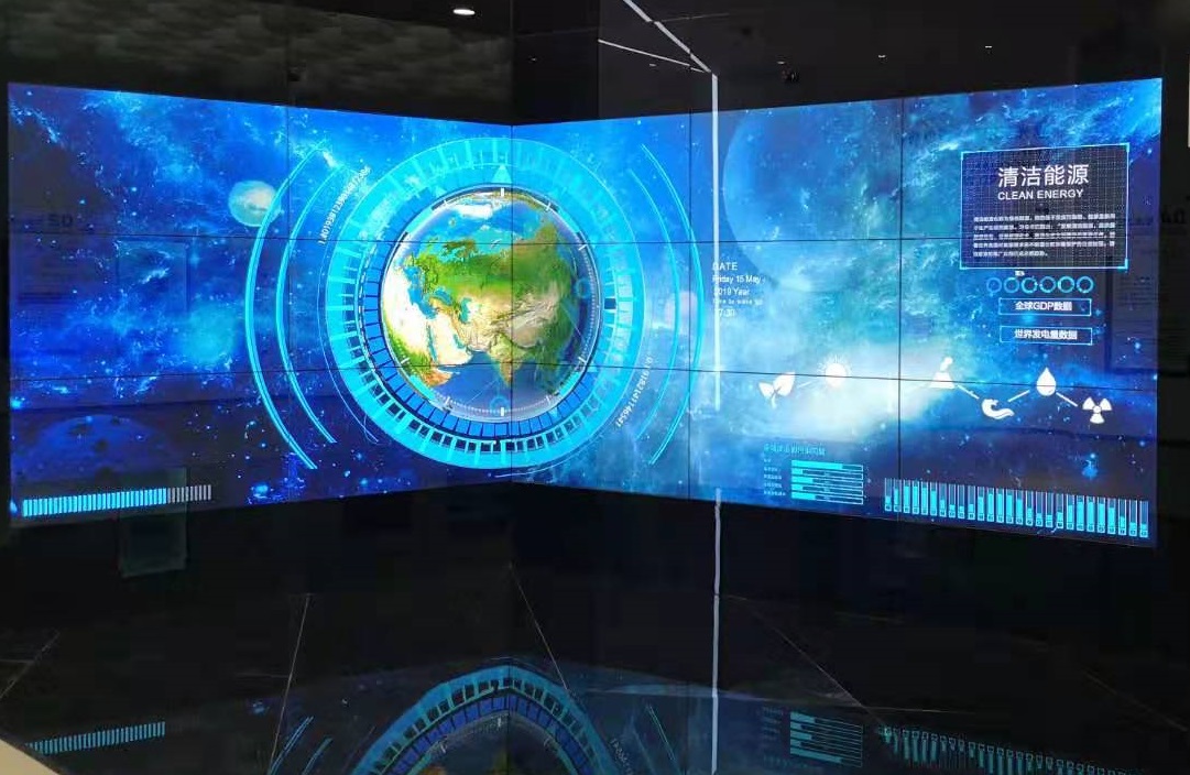 該區(qū)域?yàn)?2臺(tái)投影機(jī)投射出的L型裸眼3D沙盤,展出了,鐵路和公路交通圖,礦產(chǎn)區(qū)域分布情況;以及“光伏領(lǐng)跑 綠色發(fā)展”主題影片,一同感受陽(yáng)泉光伏領(lǐng)跑者示范基地一路走來(lái)的光輝歷程。